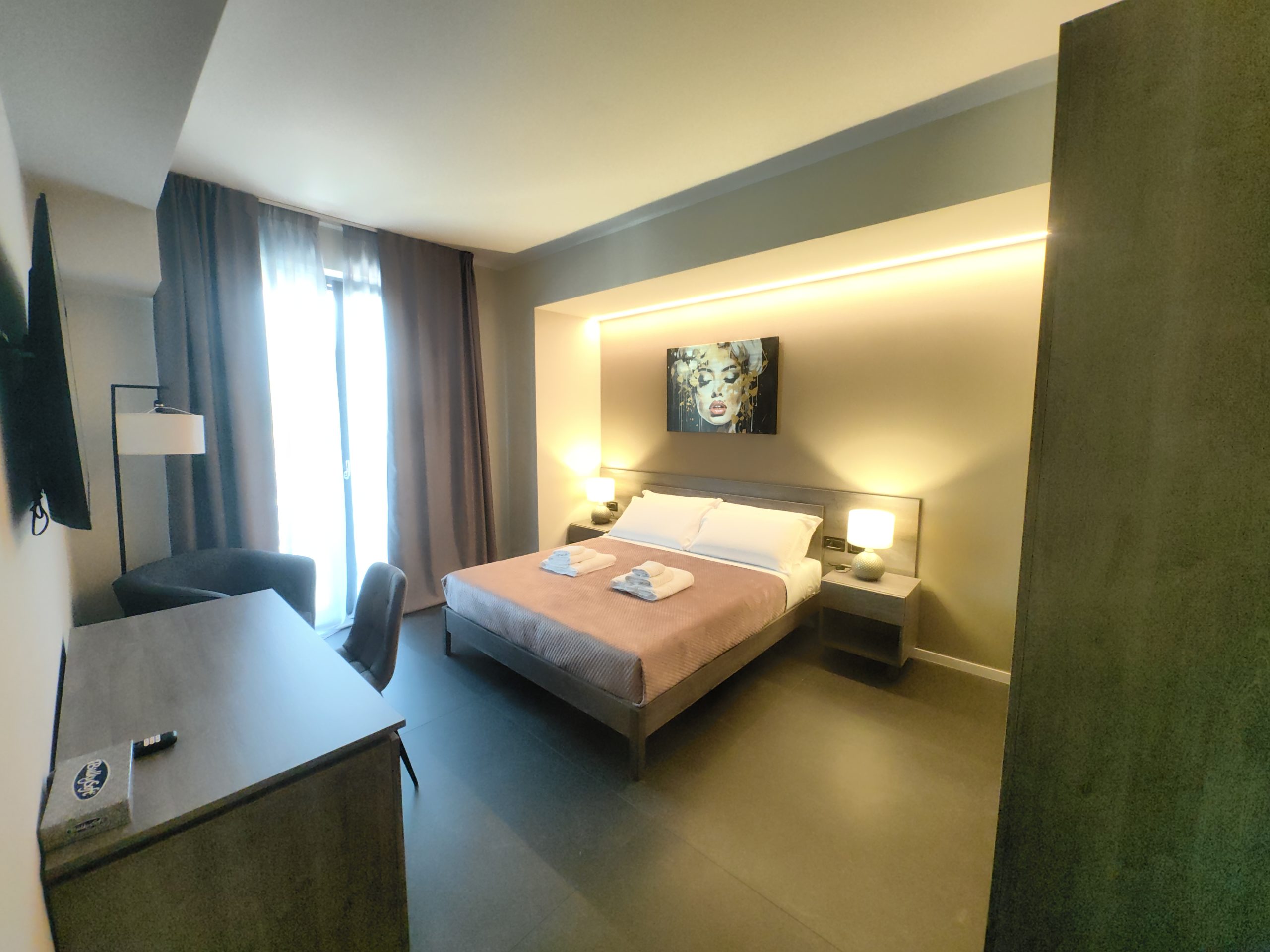 Le camere dispongono di 2, 3 e 4 posti letto in base alle proprie necessità, Bagno con Vasca e/o Doccia, TV, WiFi gratuito e Climatizzatori